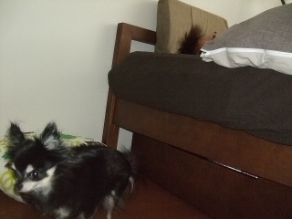 ベッドの隣にあるマットに座り、