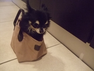 自らお散歩BAGに入り、