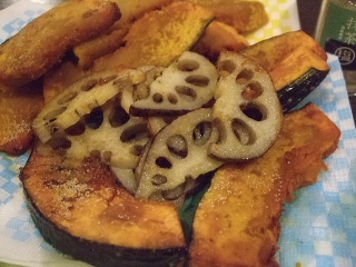 かぼちゃとレンコンの素揚げを