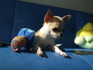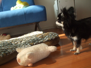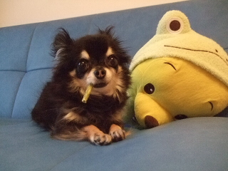 ホネホネを食べずに、こんな風にくわえてボーっとしていることがよくあります。