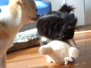 せっかく仲良く座ってたのに・・・意味ないじゃな~い(`Д´)ノ