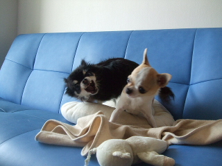 寝転がってTVを観る旦那サマの横で挑発するミュークさん・・・