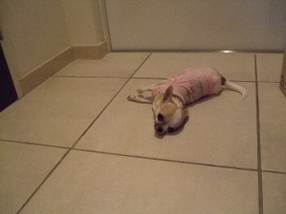 お散歩に行く準備の整ったリズムちん