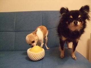 「梨を買ってきた」と沢山渡されて大喜び♪