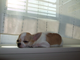 ↓西陽の差し込む窓枠の上