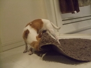 家にあるマットすべてをこうやってひっくり返すイタズラをする