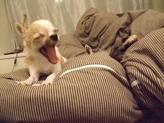 眠くなってアクビします」