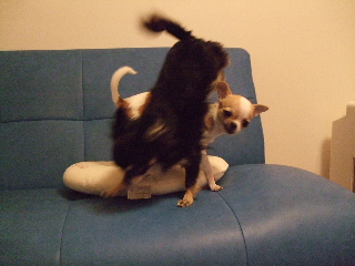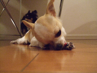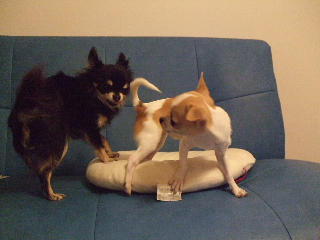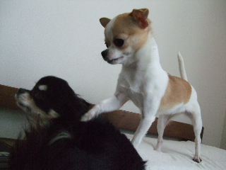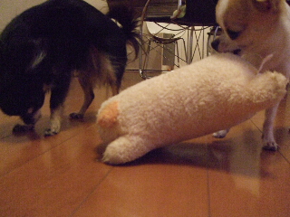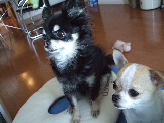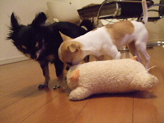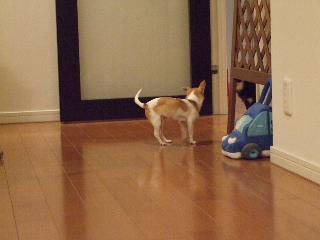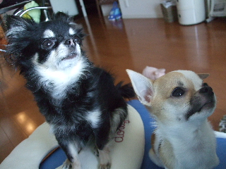 珍しさのあまり、ビビり気味のチワワンズ・・・・