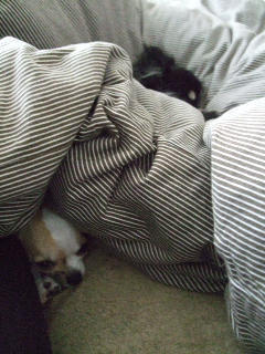 布団の上と下で眠るチワワンズ( ´∀`)