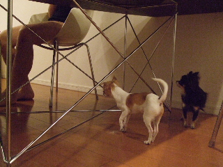 リズムちんはテーブルの下に隠れっぱなし(>Д<)