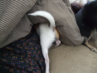 お尻丸出しでお布団の中へ・・・(;´∀`)