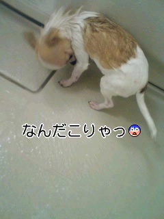 泡だらけの自分の身体に驚いてキョドってました