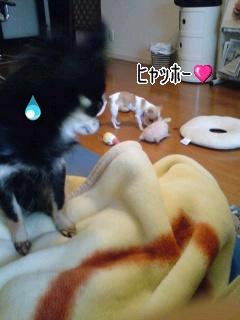 ミュークがリズムおねえちゃんの顔をペロペロ・・・