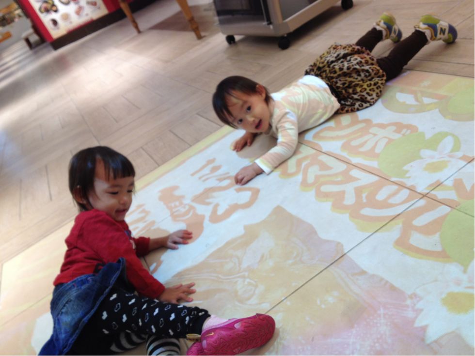 床に寝転ぶ女子ども