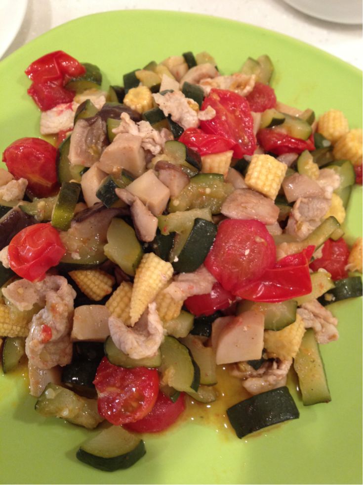 ズッキーニ、エリンギ、ヤングコーン、プチトマトを