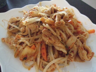 キムチと豚肉ともやし、他冷蔵庫のあまりもの野菜を