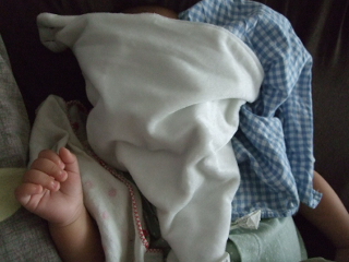 ガーゼのハンカチや顔周りにある布のお人形やらを