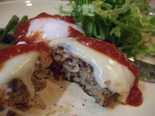 ハンバーグの向こう側に写っているのが温泉タマゴちゃんです。