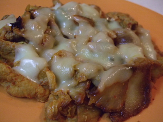 (キムチと豚肉を炒めただけの上にとろけるチーズをのせただけ・・・)